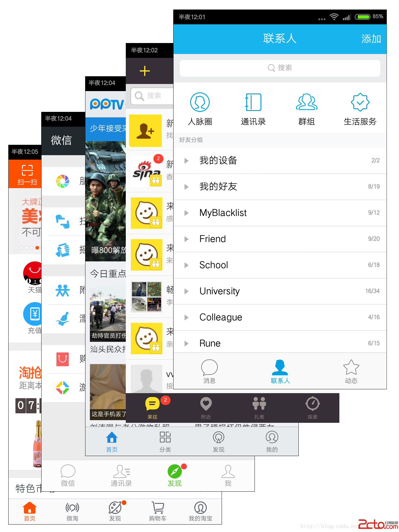 當下主流的軟件沒有一個統一明確的風格,App框架什麼樣的都有,但個人鐘情於頁面底部Tab分簽架構,移動設備的屏幕雖然越來越大,但是顯示的內容還是有限,為了能