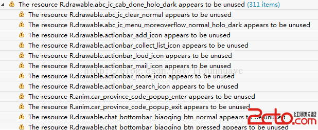看這裡有300多條沒使用的資源信息,其中包括乳品,動畫xml,背景xml,字符串資源,dimens資源等等,刪除可以減少安裝包大小。並且使項目結果較為清晰,不然有朝一日[N年後的今天],你再次維護此項目的時候會讓你頭疼到死,因為你無法知道當初留下這些沒有使用的資源的用意何在(當然,這一條同樣適用於代碼冗余審查,留下不使用的代碼比資源更加難於維護)。