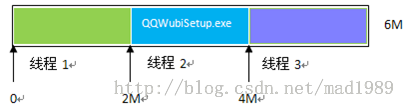 實現原理(1)首先獲得下載文件的長度,然後設置本地文件的長度。(2)根據文件長度和線程數計算每條線程下載的數據長度和下載位置。如:文件的長度為6M,線程數為3,那麼,每條
