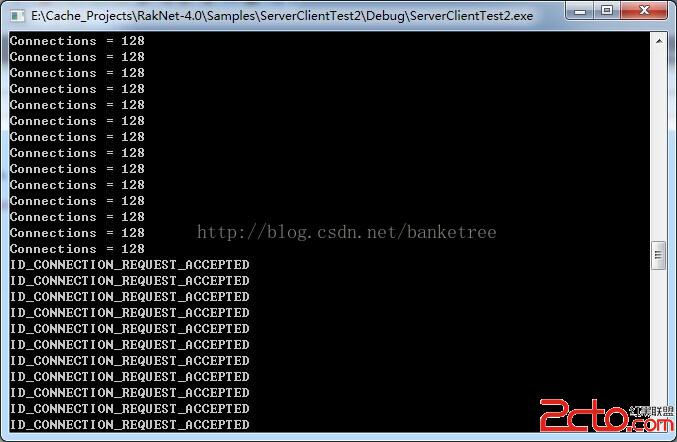 <喎?/kf/ware/vc/" target="_blank" class="keylink">vcD48cHJlIGNsYXNzPQ=="brush:java;">// Connects, sends data over time, disconnects, repeat class Client { public: Client() { peer = RakNet::RakPeerInterface::GetInstance(); } ~Client() { RakNet::RakPeerInterface::DestroyInstance(peer); } void Startup(void) { RakNet::SocketDescriptor socketDescriptor;