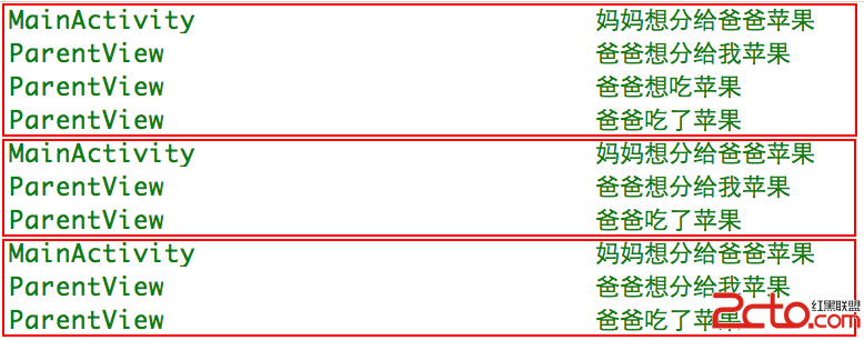 場景三:爸爸搶了蘋果,將onInterceptTouchEvent的intercept置為true