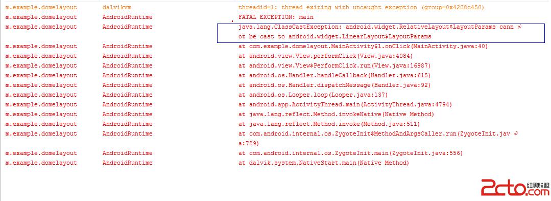 如果使用錯誤的父布局,則會報錯。說類型轉換異常