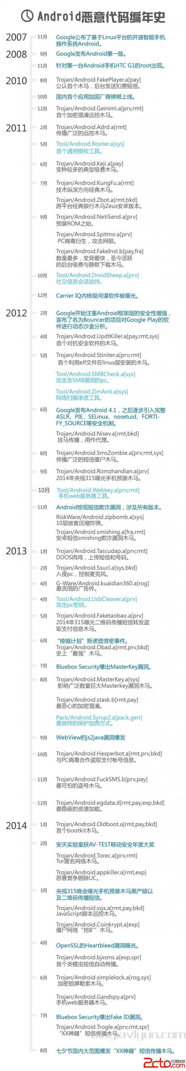 以下按照時間順序總結近年來移動安全大事件和典型移動惡意代碼。