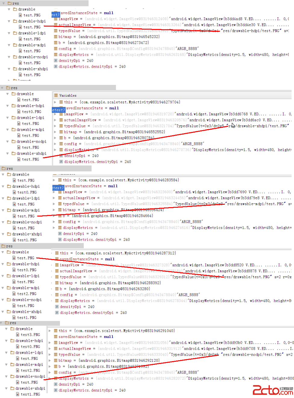 可見drawable-nodpi目錄下的圖片密度值為0xffff,即65535,帶入判斷一算,結果正如測試所得。