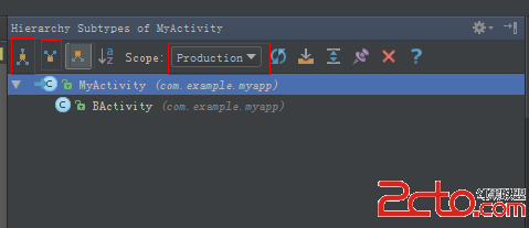 比如我選擇了Production,如下圖,你只會看到MyActivity,我的代碼中還有繼承MyActivity的類,所以MyActivity前面有一個箭頭,不過我沒有展開。
