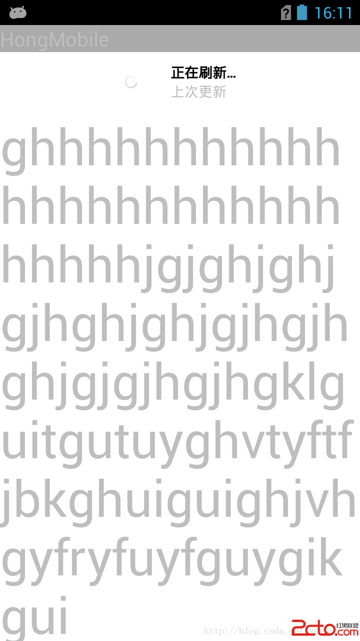 由於時間關系,我主要測試了ScrollView,代碼中已實現ListView下拉和上拉刷新,不過沒有怎麼測,