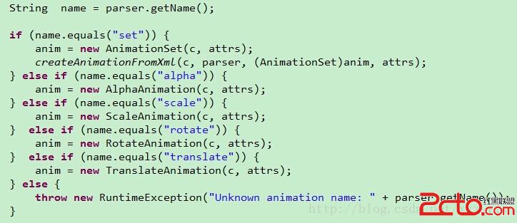 標記處的那個位置,就是關鍵代碼。在這裡面才會處理與objectAnimator相關的標簽,如截圖所示: