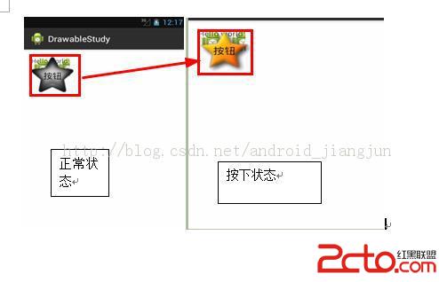 上面的代碼是用來實現按鈕的圖片切換效果的。可以看出,為了實現按鈕的按下特效,需要編寫相當多的java代碼。為此,Android提供了一種改變Button默認樣式的方法,這種方法不需要編寫一行java代碼.