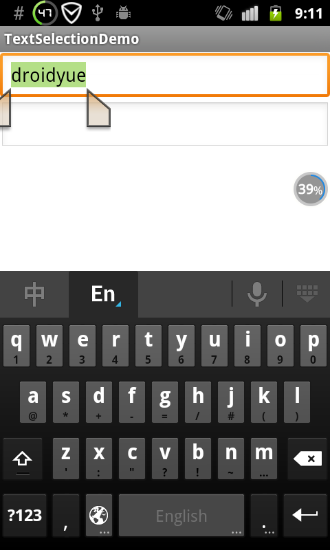 EditText和AutoCompleteTextView設置文字選中顏色 大多數Android Rom上,文本選擇的背景色都是很好看的鮮綠色, 但是在某些垃圾的三星手機