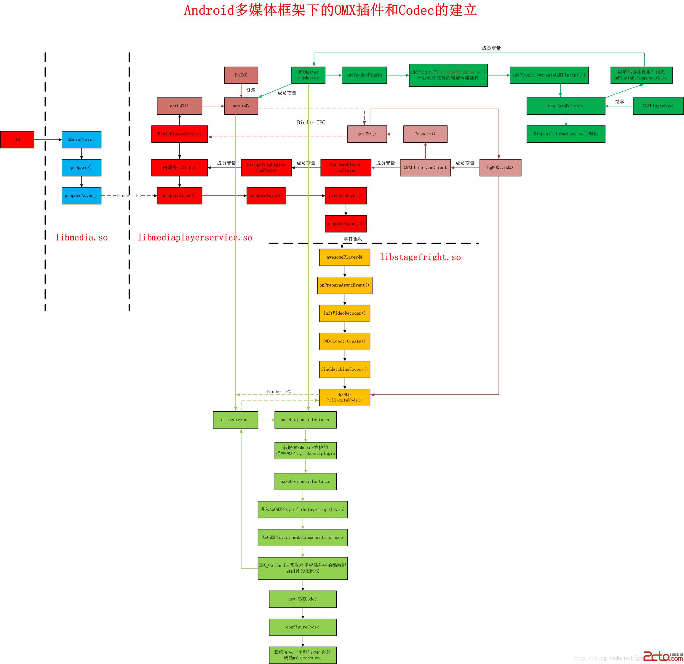 後續內容的主要是涉及相關OMX組件構造的標准構造,自己也要學習後才能消化,先和大家分享到這裡,最終會提煉出一個大的框架和模塊間的處理圖,方便更好的理解這個OMX組件的構建過程。