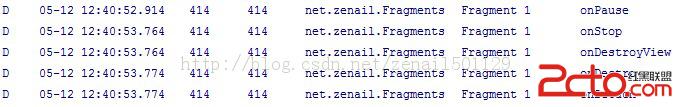 6、在模擬器上長按Home按鈕,再單擊Fragments以啟動應用程序,LogCat顯示如下:
