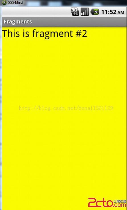 3、在模擬器上運行程序,效果如下:當設備處於縱向模式時,顯示碎片2,: