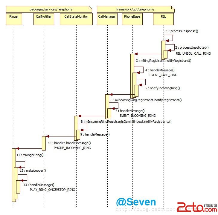 本系列文章以MT/MO為主線流程,並對其中的細枝末節進行補充說明,比如來電響鈴流程。在MT流程的分析中已經涵蓋了流程的發起與終止,本文所描述的響鈴流程始於MT流程的發起,如對MT流程不熟悉的童鞋請查看文章《Android 4.4 Kitkat Phone工作流程淺析(五)__MT(來電)流程分析》以及《Android 4.4 Kitkat Phone工作流程淺析(六)__InCallActivity顯示更新流程》。