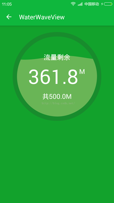 本文實例講述了Android編程使用自定義View實現水波進度效果。分享給大家供大家參考,具體如下:首先上效果圖:簡介:1.自動適應屏幕大小;2.水波自動橫向滾動;3.各