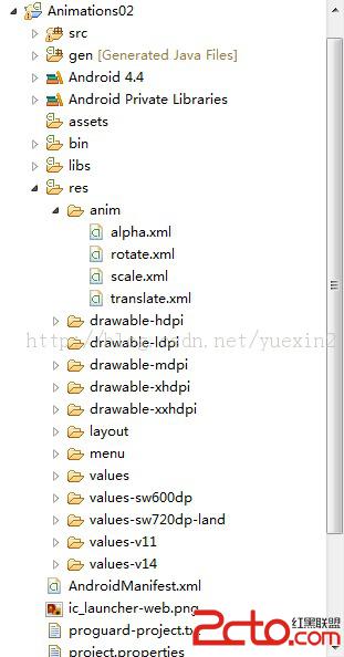4.在代碼中使用AnimationUtils當中裝載xml文件,並生成Animation對象