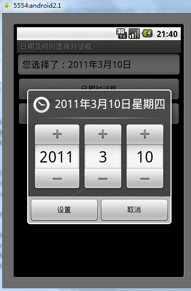 Android之日期及時間選擇對話框用法實例分析
