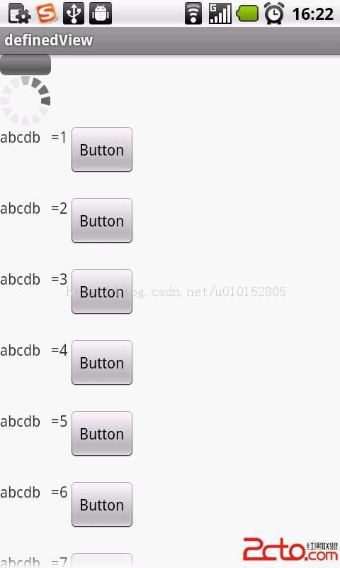 開啟一條線程定時發送消息,來模擬加載組件的效果,自定義組件使用ScrollView展示,注意,這裡ScrollView內部必須要有 一個子布局。把自定義控件new出來添加到子布局中。就可以實現每隔5秒中產生一個控件並設置相對應的參數。
