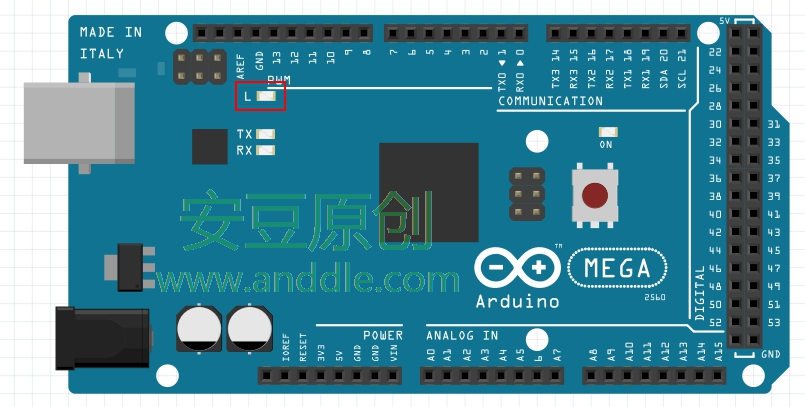 第3節 控制LED燈現在我們開始嘗試用代碼控制一個真正的直觀的硬件設備。第一個例子:讓Arduino開發板上的一個LED小燈周期性的打開、關閉。第二個例子:讓LED燈亮度