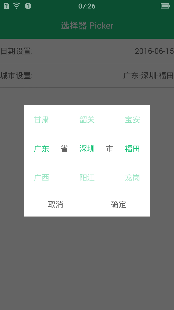 先上圖: 省市縣三級聯動,選地址經常用到用NumberPicker控件實現滑動,json數據解析使用fastjson框架使用很簡單,傳入一個String[