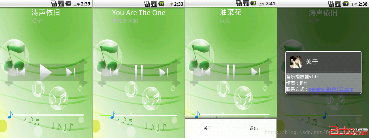 這是一個基於Service組件的音樂播放器,程序的音樂將會由後台的Service組件負責播放,當後台的播放狀態改變時,程序將會通過發送廣播通知前台Activity更新界面