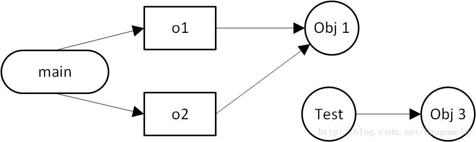 程序運行到注釋行時,對應的GC有向圖大致如下: