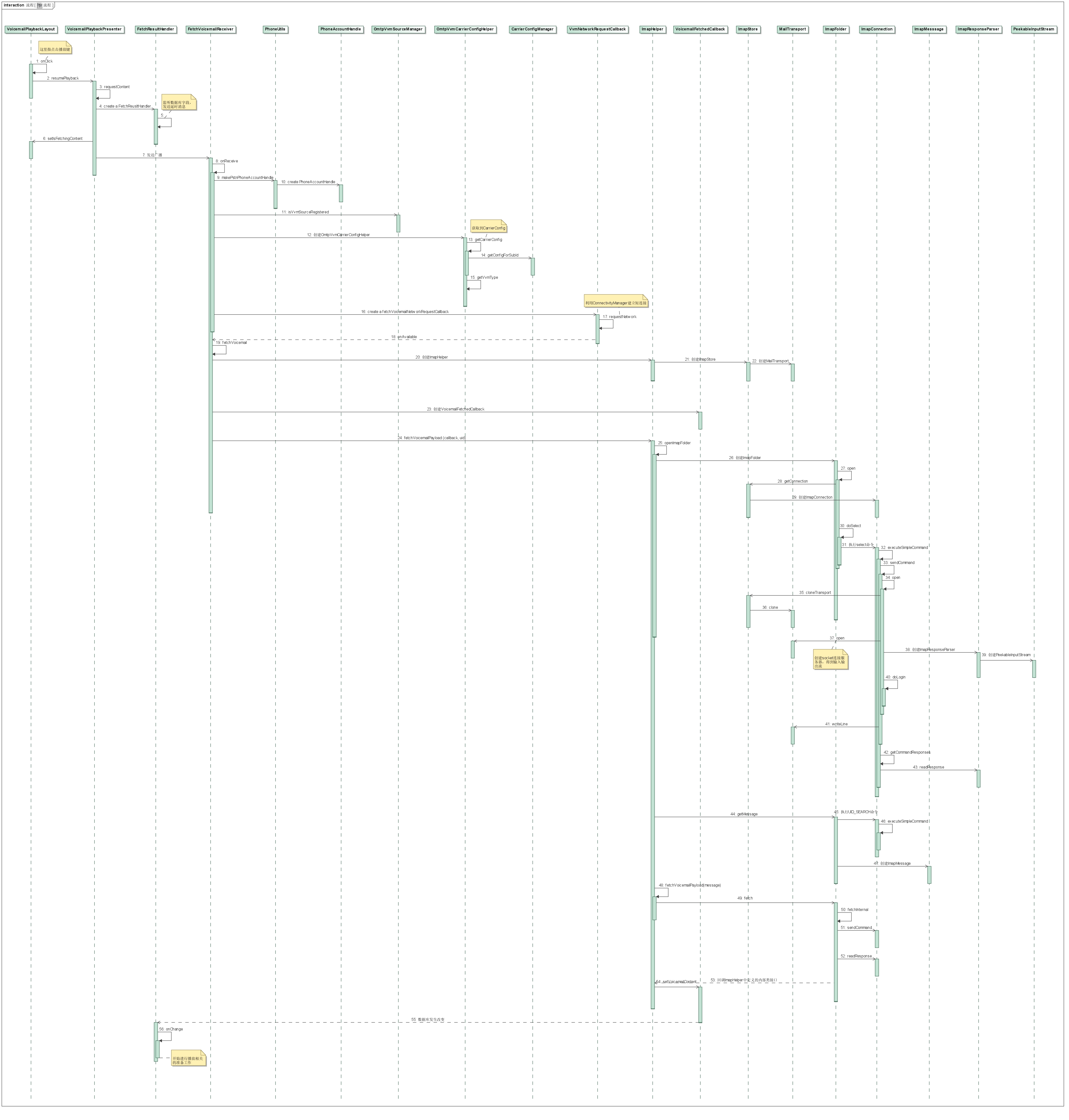 對於下載流程而言,VoicemailPlaybackPresenter將以廣播的方式通知FetchVoicemailReceiver。後者接收到廣播後,將利用ImapHelper類來進行下載操作。