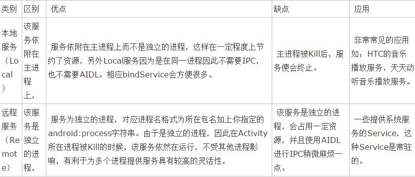 如果你只是想要啟動一個後台服務長期進行某項任務那麼使用 startService 便可以了。如果你想要與正在運行的 Service 取得聯系,那麼有兩種方法,一種是使用 broadcast ,另外是使用 bindService ,前者的缺點是如果交流較為頻繁,容易造成性能上的問題,並且 BroadcastReceiver 本身執行代碼的時間是很短的(也許執行到一半,後面的代碼便不會執行),而後者則沒有這些問題,因此我們肯定選擇使用 bindService(這個時候你便同時在使用 startService 和 bindService 了,這在 Activity 中更新 Service 的某些運行狀態是相當有用的)。另外如果你的服務只是公開一個遠程接口,供連接上的客服端(android 的 Service 是C/S架構)遠程調用執行方法。這個時候你可以不讓服務一開始就運行,而只用 bindService ,這樣在第一次 bindService 的時候才會創建服務的實例運行它,這會節約很多系統資源,特別是如果你的服務是Remote Service,那麼該效果會越明顯(當然在 Service 創建的時候會花去一定時間,你應當注意到這點)。