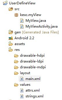 <?xml version="1.0" encoding="utf-8"?> <LinearLayout xmlns:android="http://schemas.android.com/apk/res/android" xmlns:test="http://schemas.android.com/apk/res/kexc.myView" android:orientation="vertical" android:layout_width="fill_parent" android:layout_height="fill_parent"> <TextView android:layout_width="fill_parent" android:layout_height="wrap_content" android:text="@string/hello" /> <kexc.myView.MyView android:layout_width="fill_parent" android:layout_height="fill_parent" test:title="wo shi text" test:textSize="20px" test:textColor="#fff" /> </LinearLayout>
