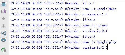 最後打印 LogCat 中的日志,data.xml的解析就完成了