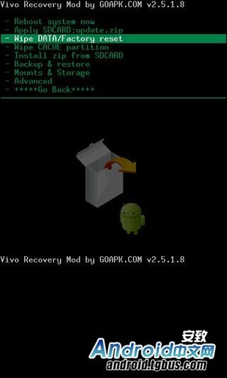 3、選擇Wipe DATA/Factory reset,然後再選擇delete all user data