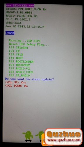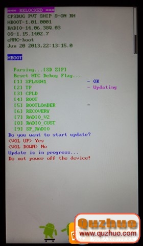 2、手機在關機情況下,一起按下音量下鍵+開關機鍵,手機自動進入 Hboot 方式將自動晉級,點音量上鍵供認
