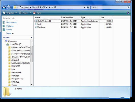 創建一個新文件夾(例如:C:\Android),並將剛才得到的那三個文件放入新建的文件夾中
