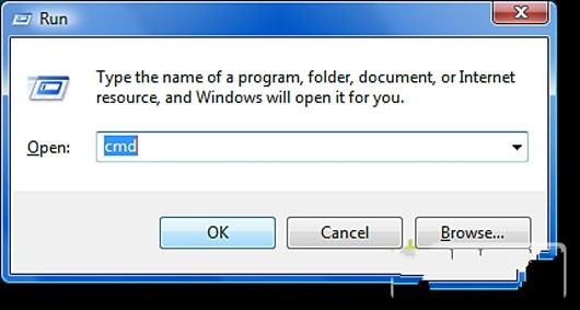 打開命令提示(方法:開始>運行>輸入CMD,)。出現的窗口中調用命令提示符。