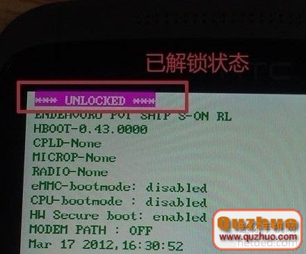 7:手機端操作上圖內容後,即可完結解鎖,進入HBOOT後如下圖,所有過程完結