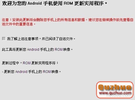 警告:安裝 ROM 更新實用程序 (RUU) 將會刪除手機上的所有信息和數據。