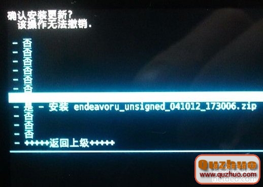 6:進入sd卡目錄,挑選方才放進入的ZIP,也即是上面下載的zip格式的刷機包,找到後按音量鍵挑選,電源鍵承認,挑選是。