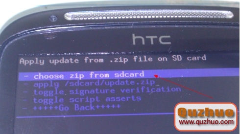 3:進入到新的頁面後,挑選choose zip form sdcard (對照中文版Recovery的為:從 SD卡挑選升級包更新),按開機鍵承認