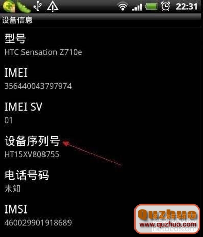2:檢查並記下HBOT版別和設備序列號:如圖所示(menu->設置->關於手機->設備信息->設備序列號)