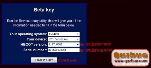 3:然後按如下圖示 挑選或許填寫獲取的機器材料信息,挑選體系版別、手機類型、HBOOT版別號,然後再填入S/N碼,然後點擊提交