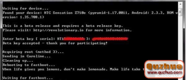 6:輸入key碼後敲回車履行軟解,之間手時機主動重啟幾回回來fastboot界面,如圖: