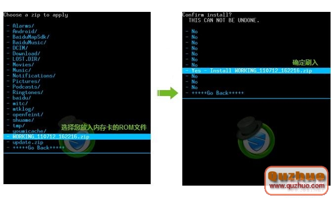- 選擇您所放入內存卡的ROM文件 - Yes - Install 確定刷入