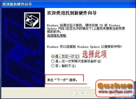 3.接著會彈出一個裝置新硬件的窗口,挑選第一項“是,僅這一次”,然後再點擊“下一步”;