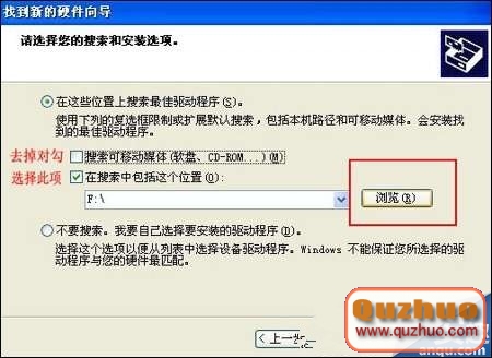 5.此刻要先去掉“查找可移動媒體”的勾選,勾選“在查找中包括這個方位”,再點擊“閱讀”按鈕;