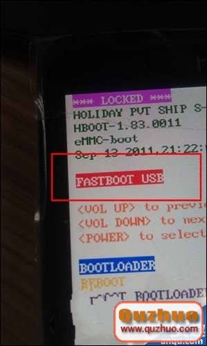 1.正常形式下關機然後按住【音量減】和【電源】鍵進入HBOOT狀況。