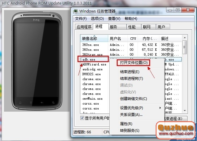5、在“任務管理器”的“進程”選項中找到一個名為“adb.exe”的進程;