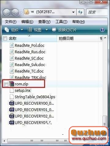 7、隨後會彈出該進程的文件位置,然後在目錄中找到名為“rom.zip”的壓縮包,將它復制出來!復制好後,現在你可以關閉RUU對話框了;