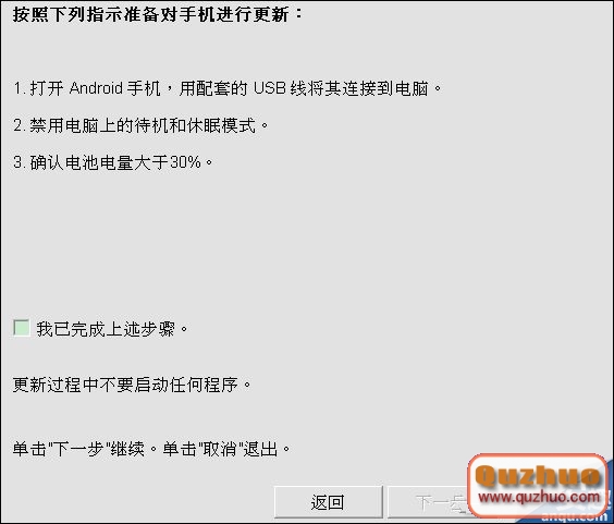 4.除非RUU想到指示,否則不要對你的安卓手機進行交互操作(特別注意)。