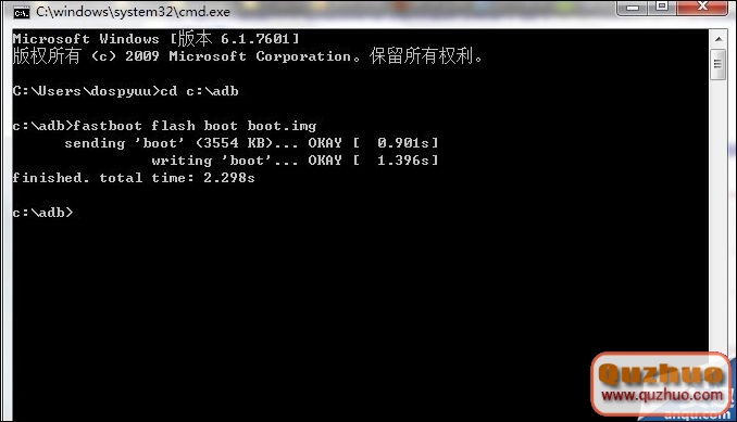 5、輸入fastboot flash boot boot.img回車,提示回到提示符下就完成了,這時顯示finished就成功刷入boot了;