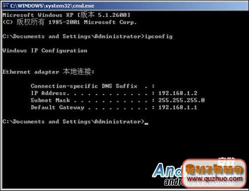 首先在你的 電腦上(當然要是連著你無線路由器並能正常上網的那一台 電腦)----開始----運行-----輸入cmd並確定-----輸入ipconfig並回車會出現一個信息框,不要關閉,如圖:
