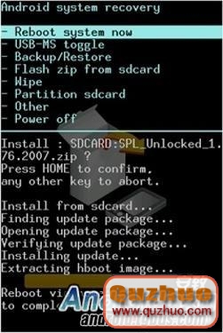 5、選擇剛復制進手機存儲卡根目錄的這個SPL解鎖文件,點擊HTC Hero導航鍵上的軌跡球,然後將開始系統將自動讀取這個文件的內容。